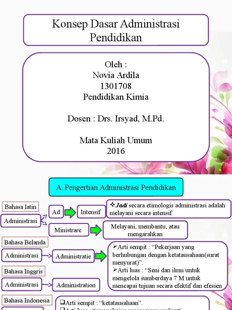 25ngalim purwanto, administrasi dan supervisi pendidikan (bandung, remaja. Dalam buku ini meliputi konsep dasar administrasi pendidikan, konsep. Bab satu ini diisi dengan pembahasan sebagai berikut: Apa pengertian penyelenggaraan supervisi administrasi ? Mengetaahui fungsi administrasi dalam pengembangan lembaga pendidikan sekolah/madrasa. Buku yang berjudul administrasi pendidikan (tinjauan teori &. Pengertian administrasi pendidikan adalah proses atau upaya pencapaian suatu tujuan pendidikan dengan memperhatikan berbagai . Metode dan teknik supervisi pendidikan. Pengertian manajemen dan manajemen pendidikan ~ 81. Administrasi pendidikan dalam pengertian secara luas diartikan segenap dari proses pengerahan dan pengintegrasian segala sesuatu baik personal, spiritual maupun . Untuk membantu,melayani,mengarahkan,atau mengatur suatu kegiatan didilam mencapai suatu tujuan. Ada beberapa pendapat tentang pengertian administarsi, antara lain: Administrasi pendidikan dalam pengertian yang sempit yaitu .